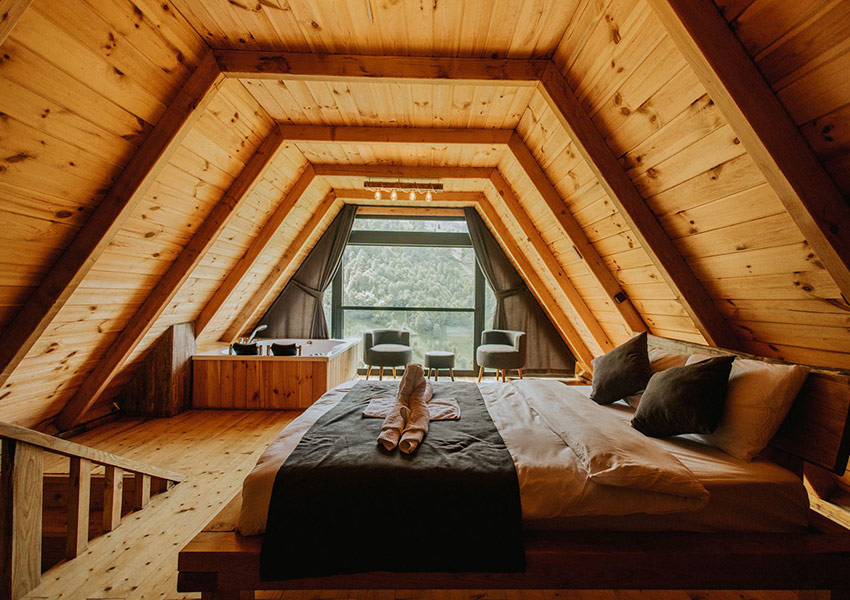 Ahşap yapısı ve rustik tasarımıyla eşsiz bir konaklama deneyimi sunar.