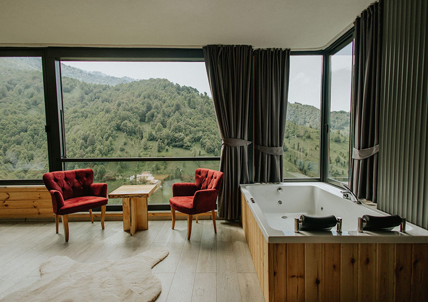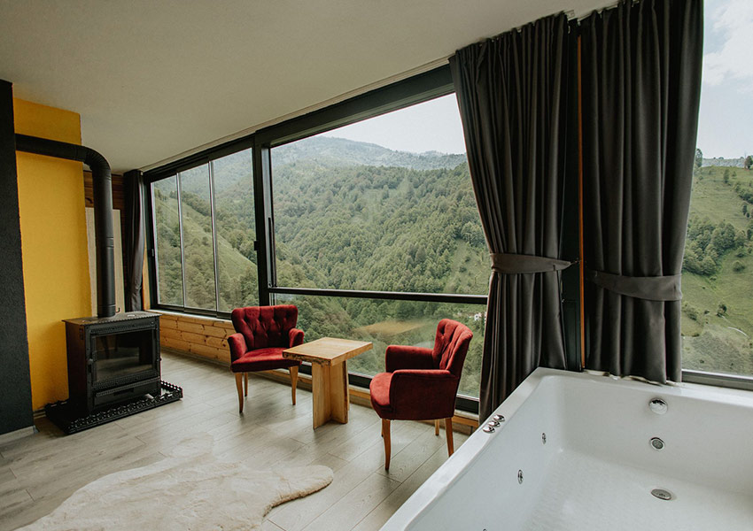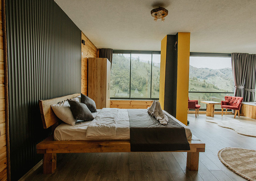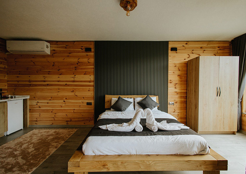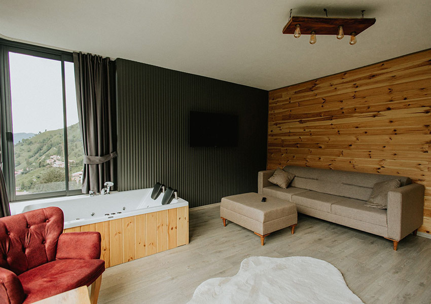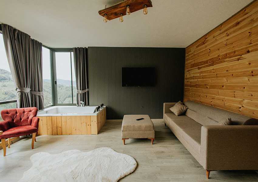 Ena Bungalov’un 201 numaralı suit odası, lüks ve huzurun mükemmel uyumunu sunuyor. Dağ manzarasına karşı jakuzili banyonuzda rahatlayabilir, kablolu ve uydu TV ile keyifli vakit geçirebilirsiniz. Yüksek hızlı kablosuz internet ve merkezi klima ile konforunuz her an önceliğimiz. 24 saat operatör hizmetiyle her ihtiyacınızda yanınızdayız. Bu özel suit odada, doğanın dinginliğiyle modern yaşamın ayrıcalıklarını bir arada keşfedin.